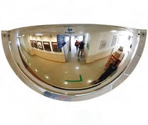 The half dome mirror provides a panoramic 180° view, ideal for monitoring large areas such as corridors, entryways, and shared spaces.