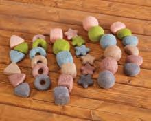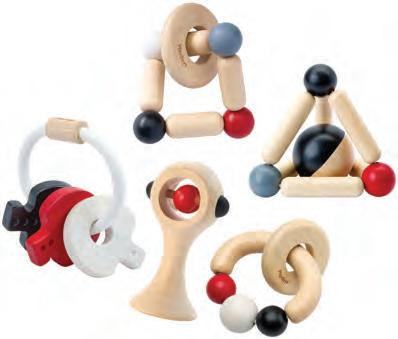16-piece wooden set for ages 3+. Encourages creativity, pattern play, and spatial thinking with natural and black shapes.