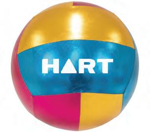 Brightly coloured inflated rubber PVC ball with a soft feel.