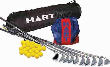 Kit includes: 9x HART Junior Golf Clubs RH, 1x HART Junior Golf Clubs LH, 30x HART Practice Golf Balls, 1x HART Ball Tube and 1x HART Mini Mesh Carry Bag. Contents may vary.
