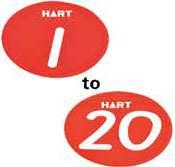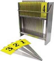 Metal upright discs 9 cm (H), with black numbers 1 to 20 on one side only.