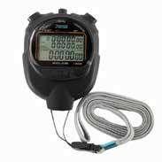 3 row display and measures to 1/100 sec. Dual timing function and pacer function. Water-resistant and includes a CR2032 3.0V lithium battery and lanyard.