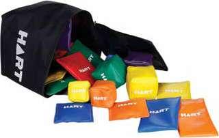 Set includes: 6x Small Bean Bags Cubes 5 cm, 6x Large Bean Bag Cubes 7 cm, 6x Flat Bean Bags 10 x 10 cm, 6x Flat Bean Bag Rectangles 15 x 10 cm and 1 Carry Bag. Contents and colours may vary.