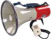 Requires 6x AA batteries. Batteries not included. Battery life of approximately 8 hours (talk). Audible range 500-700 m depending on operating conditions. Siren 100 dB. Speaker 95 dB.