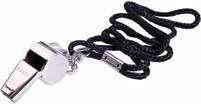 Suitable for coaching and refereeing. Plated in nickel with a natural cork pea.