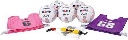 Kits include: 5x HART Club Netballs, 2x Sets of HART Mock Mesh Netball Bibs, 1x HART Carry Net, 1x HART Plastic Whistle with Lanyard and 1x HART Hand Pump. Contents and colours may vary.