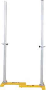 Premium grade anodised aluminium uprights. Steel bases. Measures up to 206 cm. Weight: 5 kg each.