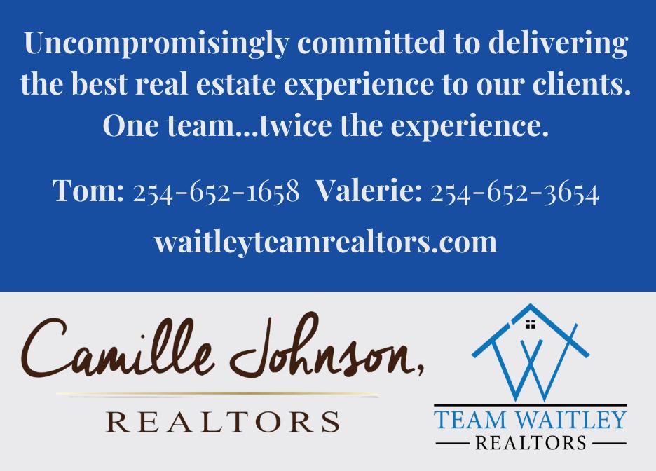 follow us on instagram @camillejohnson_realtors (254) 405-6162 | camillejohnson.com | 104 midway center Gold Star service every time