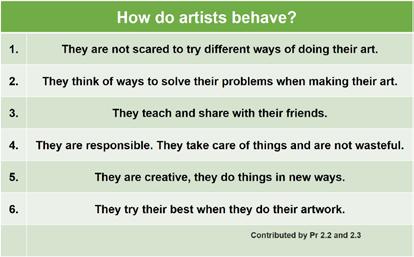 “ Arts education is not just about recalling facts of artists or performances. The focus has shifted from skills and knowledge acquisition to a more process-oriented, inquirybased approach to learning that allows the students’ voice to be heard.”