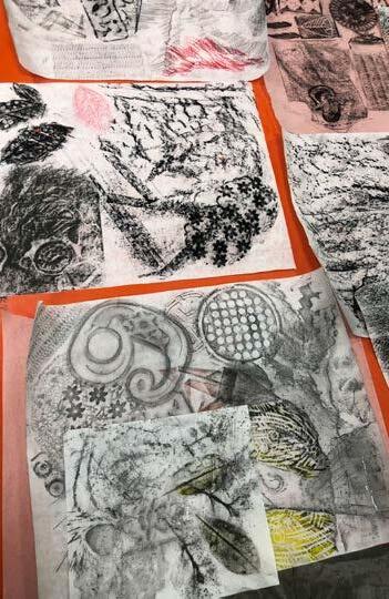 As participants, we quickly formed a bond with our sensei in the few days together, with spontaneous conversations, discussing, researching and experimenting while we created our works. We shared our thoughts on art, our life experiences and had many moments of laughter together. Truly, our sensei embodied the genuine meaning of creating a safe, joyful and exciting classroom environment for their students to be. For example, when one of us tried something new, like stuffing the prints into cups, shining a light through the plastic matrix to get a shadow ‘print’, or rubbing textures on the floor