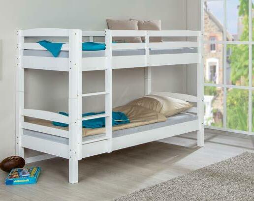 ETAGENBETT, Kiefer massiv - weiss lackiert, inkl. Lattenrost, B/T/H: ca. 210x102x148 cm, ab 6 Jahren, kann kinderleicht übereinander, aber auch einzeln gestellt werden. Matratze gegen Mehrpreis.