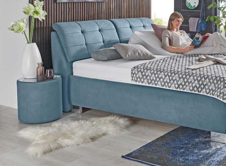 in Stoffbezug, mit hochwertiger Komfortschaum-Matratze und geräumigem Bettkasten, LF 90x200 cm inkl. Seiten- und Rückwand. Aufpreis für motorisch verstellbaren Kissen und Nackenrollen gegen Andere Farben und Zusammenstellun -