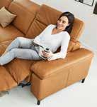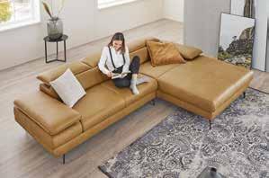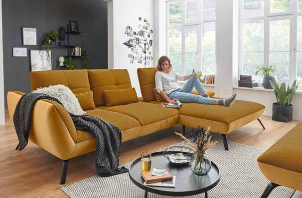 Interliving Sofa Serie 4054, Bezug Leder Longlife Vivre kurkuma, Metallfuß schwarz, best. aus: 3-Sitzer mit Armlehne links und XL-Canapé mit Armlehne rechts, Rücken Spannstoff, inklusive manueller Kopfteilverstellung an allen Elementen. Stellmaß ca. 347x176 cm. Ohne Zierkissen und Decke.