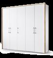 DREHTÜRENSCHRANK, 6-trg., 4 Türen Perlaglas, 2 Türen Artisan-Eiche Nachbildung, Korpus Dekor Perla, Griffe chromfarbig, B/H/T: ca. 300x223x71 cm.