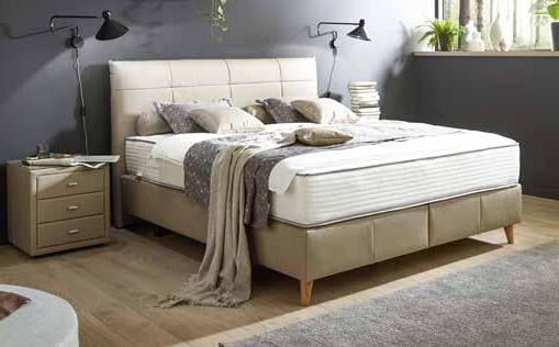 Für eine einheitliche Optik sind die abgebildeten Matratzen teilweise auch mit Stoff- od. Lederumrandung erhältlich.
