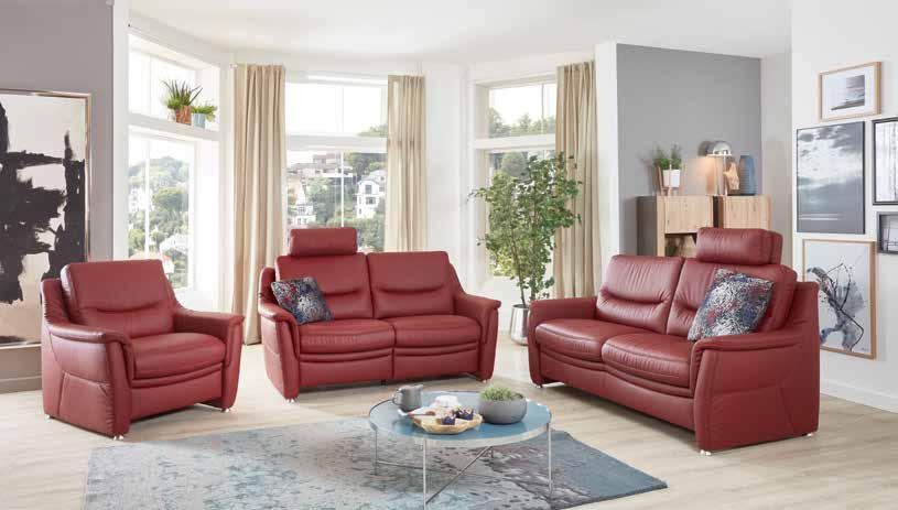 Bequeme Garnitur, Longlife Lederbezug in bordeaux, Sitzkomfort: Kaltschaum. 2er-Sofa, ca. 192 cm *statt 2.560.- 1.399.- Sessel *statt 1.729.- 999.Kissen, Rücken echt bezogen, Sitzkomfort: Federkern, Relaxfunktion, Kopfstütze, Bettfunktion, andere Farben und Zusammenstellungen zum individuellen Preis erhältlich.