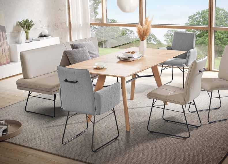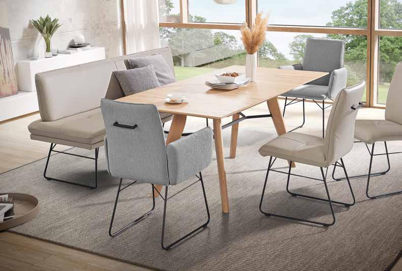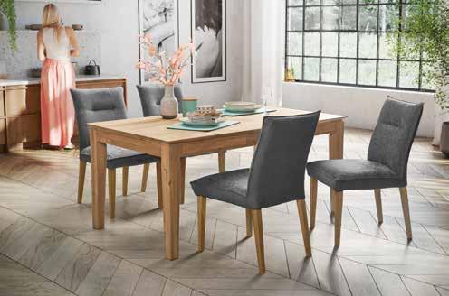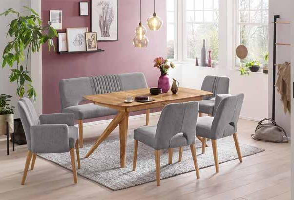 Essgruppe, Eiche rustikal, Stoffbezug in gra mit Mittelauszug *statt 1.402.- 799.- Solitärbank, B 399.- Polsterstuhl, per Stück *statt 253.- 149.- AR sammenstellungen zum individuellen Preis erhältlich.