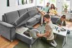 Platz für Kissen und Decken bietet der Stauraum im Longchair. Gegen Mehrpreis.