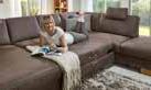Bequeme WOHNLANDSCHAFT, Stoffbezug in nougat, ca. 236x323x165 cm, Sitzkomfort: Federkern. Kissen, Stauraum, Bettfunktion, Kopfstütze, Armteilverstellung, Rücken echt bezogen, andere Farben und Zusammenstellungen zum individuellen Preis erhältlich.