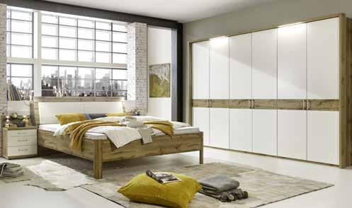 Modernes Schlafzimmer in Eiche Dekor/weiß, mit vielen funktionellen Stauraummöglichkeiten. BETT, Liegefläche ca. 180x200 cm. Nachtkonsolen-Paar, B: ca. 50 cm 299.- Drehtürenschrank, 6-trg. B/H/T: ca. 300x216x58 cm *statt 1.387- 799.- 5-trg. ohne Laden *statt 1.225- 699.- Passepartout, Beleuchtung, Leselampen, Kopfteilpolster, Stauraum im Kopfteil, Bettschubkästen, Rückwandpaneele und Kommoden gegen Mehrpreis erhältlich. Andere Größen und Zusammenstellungen zum individuellen Preis erhältlich. 12 Alle * Preise und *Rabatte beziehen sich auf den Ludwig Listenpreis. Der aktuelle Werbepreis ist gleichzeitig der niedrigste Preis innerhalb der letzten 30 Tage.