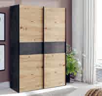 Schwebetürschrank, Eiche Dekor/dunkelgrau, Griffe in Metall schwarz, B/H/T: ca. 120x190x60 cm.