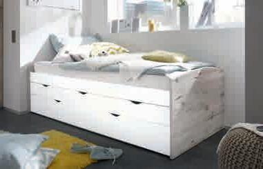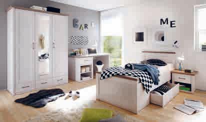 Jugendzimmer, Pinie weiß/Trüffel Nachbildung. Kleiderschrank, 3-trg./1 Spiegeltür, B/H/T: ca. 148x201x62 cm *statt 563,- 349,- Nachtkommode, ca. 51x46x43 cm *statt 140,- 79,99 Schreibtisch, B/H/T: ca. 141x77x81 cm *statt 298,- 199,Bett, inkl. 1 Lade, LF ca. 90x200 cm, Stellmaß ca. 96x90x205 cm. Matratze und Lattenrost zum individuellen Preis.