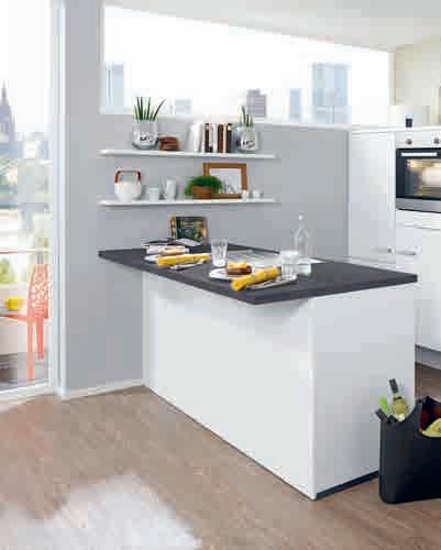 Moderne Einbauküche in weiß mit Fronten in Lacklaminat weiß Hochglanz, ca. 265x305 cm. Elektrogeräte, Essgruppe, Spüle und Armatur gegen Mehrpreis erhältlich. Andere Größen und Zusammenstellungen zum individuellen Preis planbar.