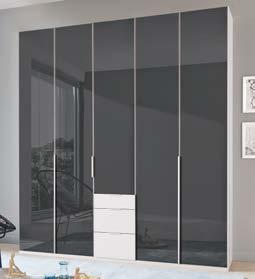 DREHTÜRENSCHRANK , Glas grau kombiniert mit Fronten in weiß Dekor, 3 Laden, B/H/T: ca. 225x234x58 cm. Andere Farben und Zusammenstellungen zum individuellen Preis erhältlich.