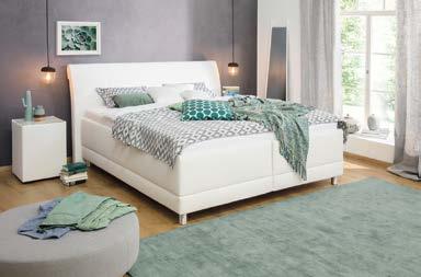 Bequemes POLSTERBETT mit Stoffbezug in Lederoptik weiß, Liegefläche ca. 160x200 cm, inkl. 5-Zonen-Kaltschaummatratzen in H2/H3, Einbaulattenroste und geräumigem Bettkasten. Liegefläche ca. 180x200 cm 1.399.- Andere Stoffe, Größen, Zusammenstellungen, passende Tagesdecke, Kissen und Nachtkonsolen zum individuellen Preis.