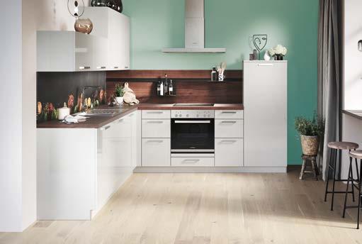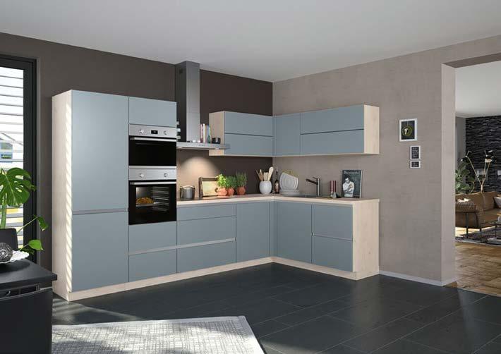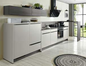 Topmoderne EINBAUKÜCHE in perlgrau ultramatt, ca. 303 cm inkl. Elektrogeräte-Set. Einbauspüle, Armatur, Essgruppe und Regalelemente gegen Mehrpreis erhältlich. Andere Größen und Zusammenstellungen zum individuellen Preis planbar.