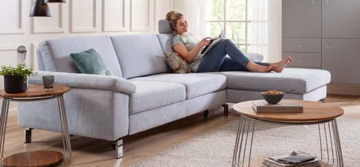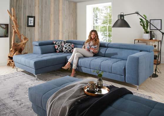 Moderne WOHNLANDSCHAFT, Stoffbezug in blau, c schaum gegen Mehrpreis. Kissen, Vorziehbank mit od gen zum individuellen Preis erhältlich.