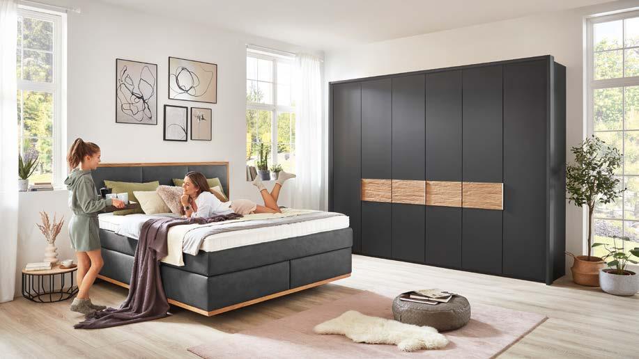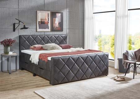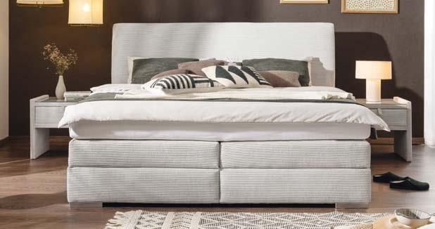 Modernes BOXSPRINGBETT in trendigem Cordbezug, LF ca. 160x200 cm, Unterfederung Taschenfederkern, Matratzen 5 Zonen Tonnentaschenfederkern und großzügiger Stauraum im Bettkasten, LF ca. 180x200 cm 1.599.- Andere Farben, Nachtkonsolen, Lampen, Kissen und Plaid gegen Mehrpreis erhältlich.