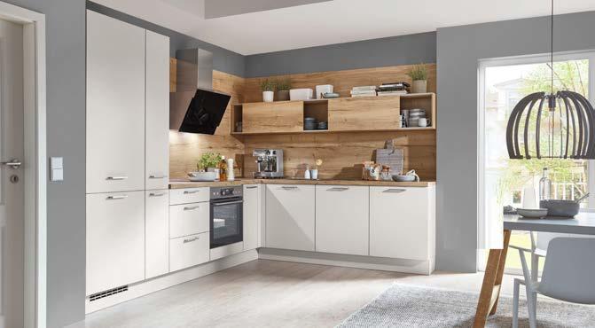 Erleben Sie die Verbindung von höchster Wohn u Zuhause. Für jede Lebenslage bietet sich viel Platz: f und Tischkultur. Der natürliche Charakter aller Eleme Wohlfühlatmosphäre. WOHNPROGRAMM Front Eich außen furniert, innen Nachbildung.