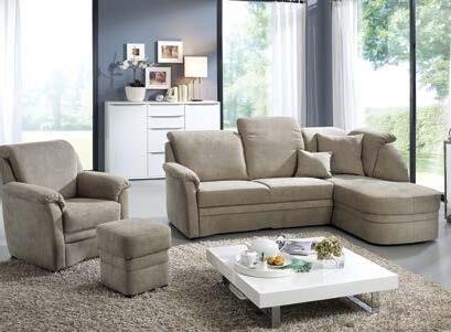 Bequeme WOHNLANDSCHAFT mit hochwertigem Stoffbezug in der Farbe oliv, ca. 225x160 cm, inkl. Stauraum. Andere Farben und Zusammenstellungen, Bettfunktion, Kopfteilverstellung, Kissen, Sessel und Hocker zum individuellen Preis erhältlich.
