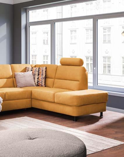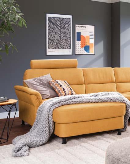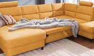 Moderne WOHNLANDSCHAFT, Stoffbezug gelb, ca. 167x331x205 cm. Kissen, Kopfstüt zum individuellen Preis erhältlich.