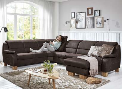 Bequeme WOHNLANDSCHAFT, Stoffbezug in dunkelbraun, ca. 263x343x171 cm, Rücken: Spannstoff. Kissen, Stauraum, Bettfunktion, Relaxfunktion, Armteilverstellung, Kopfteilverstellung, Rücken echt bezogen, Relaxecke, Vorziehfunktion, Tischfunktion, andere Farben und Zusammenstellungen zum individuellen Preis erhältlich.