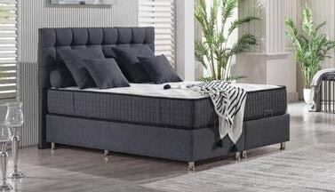 Elegantes BOXSPRINGBETT, Stoffbezug: Mikrofaser in anthrazit, Kopf- und Fußteil mit Rautensteppung, Doppelfederkern, Liegefläche ca. 180x200 cm, inkl, Stauraum und Komfortschaumtopper, Stellmaß: ca. 200x222 cm.