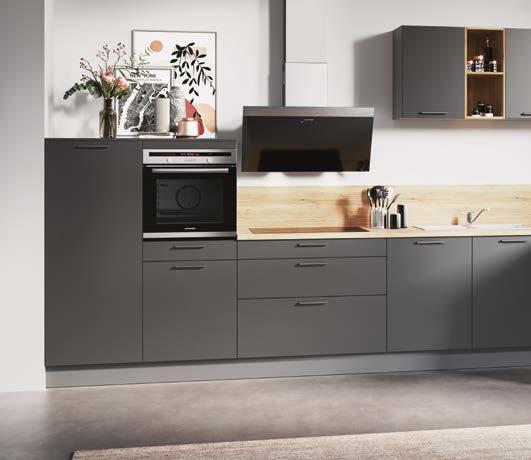 Topmoderne EINBAUKÜCHE in Mattlack graphit, mit Anti-Fingerprint-Beschichtung, lästige Fingerabdrücke haben keine Chance, ca.435x190 cm, inkl. ElektrogeräteSet. Geschirr-spüler, Hocker und Armatur gegen Mehrpreis erhältlich. Andere Größen und Zusammenstellungen zum individuellen Preis planbar.