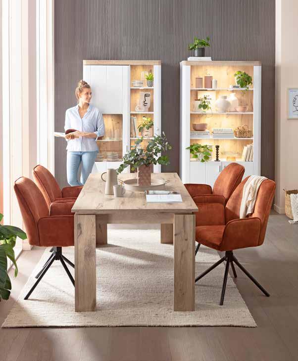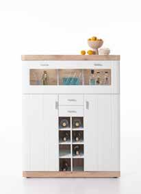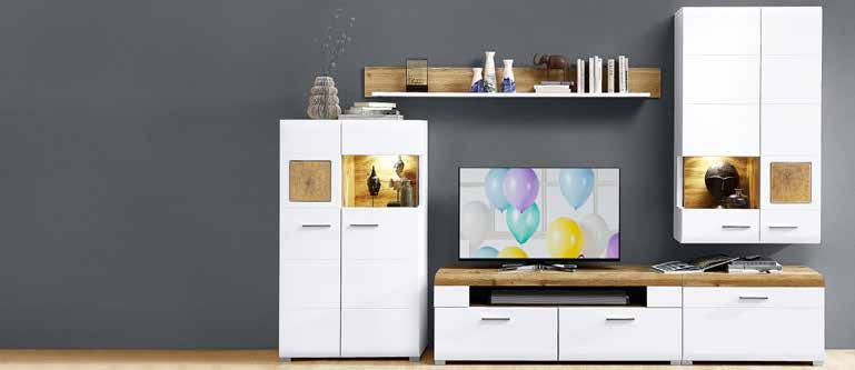 Wohn-/ Speisenprogramm, Korpus Nox Oak Nachbildung/Front weiß. Dieses Programm enthält eingebaute LED-Lampen. Die LEDs können nicht ausgetauscht werden.