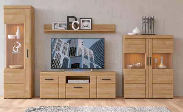 WOHNWAND, in Grandsom Eiche Dekor, Griff: Antik, mit Vollauszug, gehärtetes Rauchglas, Softclose, B/H/T: ca. 337x195x41 cm.