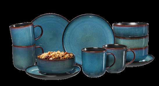 FRÜHSTÜCKSSERVICE, 12-tlg. Steinzeug, spülmaschinenfest, best. aus: je 4 Kaffeebechern, ca. 400 ml, Tellern, Ø ca. 20,5 cm und Schalen, Ø ca. 14,5 cm. Speiseservice, 8-tlg., best. aus: je 4 Speise- und Suppenteller 74.99