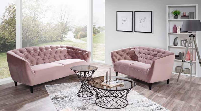 Polstergarnitur, Stoffbezug Samtoptik rose oder dunkelgrau. 3er Sofa, B/H/T: ca. 191x78x84 cm 599.- 2er Sofa, B/H/T: ca. 150x78x84 cm.