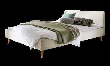Modernes POLSTERBETT, Stoffbezug in Cord beige, Fuß: Holz massiv, B/H/T: ca. 145x76x200 cm, Liegefläche ca. 140x200 cm. Ohne Lattenrost und Matratze.