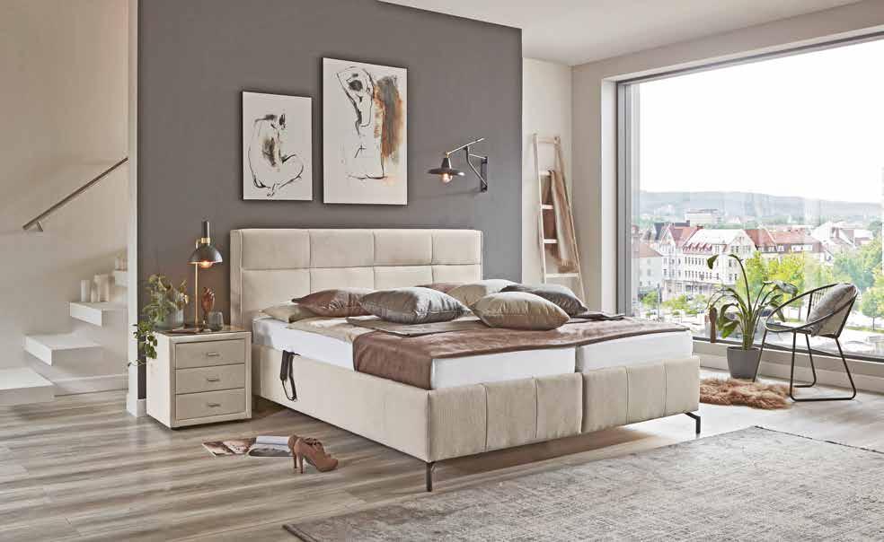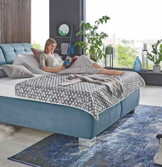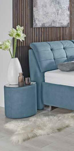 e ca. 180x200 cm, inkl. Lattenroste mit Gasdruckfeder, hochwertigen 7- Zonen Taschenfederkern-MatratBodenplatte. Kopfteilverstellung mit Gasdruckfeder, Nachtkästchen, Tagesdecken und Kissen gegen m individuellen Preis erhältlich.