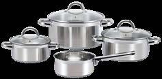 KOCHTOPFSET, 7-tlg., Edelstahl rostfrei, best. aus: Kochtopf Ø 16, 20 und 24 cm mit je 1 Glasdeckel und Kasserolle Ø 16 cm induktions- und spülmaschinengeeignet.