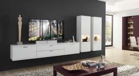 Moderne WOHNWAND, Front und Korpus in weiß NB, Absetzungen in graphit MDF, Schubkästen mit Softclose Selbsteinzug, inkl. LED–Beleuchtung, B/H/T: ca. 315x202x49 cm, Sideboard gegen Mehrpreis.