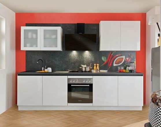 Raven sestav, ca. 310 cm Cene se nanašajo na prikazano postavitev lesenega dela kuhinje in ne vključujejo bele tehnike, korita in armature, drugih dodatnih elementov in dekoracije.