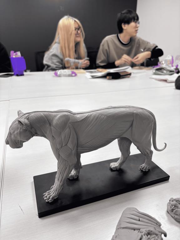 在利用黏土製作 Capstone 模型的過程中,因為我 的生物是參考貓的身體,所以老師建議我參考這個 獅子模型的肌肉結構。