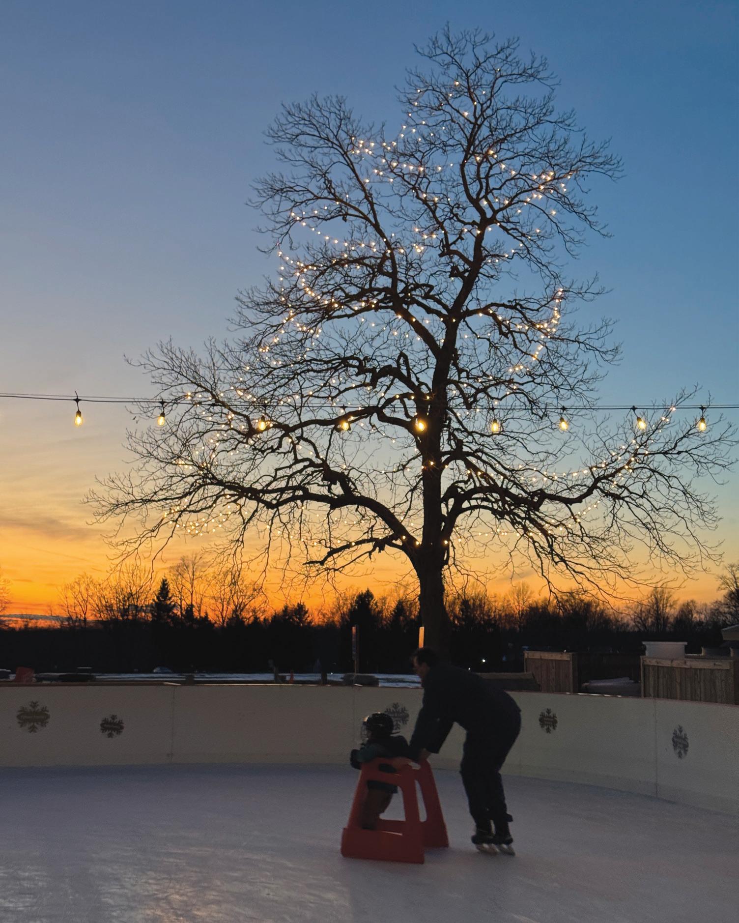 Under the soft glow of twinkling lights and a spectacular Waveny Park sunset, a child takes their first steps on the ice—an everyday moment made extraordinary by the long community effort that brought the Boucher Community Ice Rink to life. Now in its third full season, the open-air rink has become a beloved winter gathering place where families and young friends unwind, bundle up and enjoy time together outdoors—a nostalgic nod to simpler days.