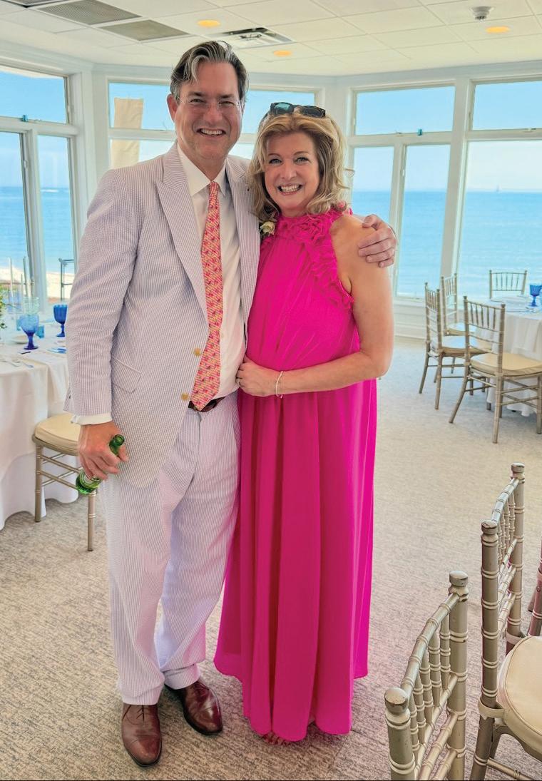 Brooke Mifflin met Ralph Gaiss in an elevator in the Wellesley building in New York, where she lived on the 32nd floor. Ralph, the perfect gentleman, held the elevator door open for her, and they chatted on their way up to the 24th floor, where he got off. Later, he asked the doorman for her name and left a handwritten note in her mailbox asking her out for a date. They’ve been married 10 years and live in Darien with three boys and a black lab puppy.